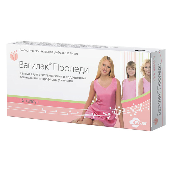 Вагилак Проледи - капсулы для восстановления и поддержания вагинальной микрофлоры у женщин. Вагилак - источник пробиотических штаммов лактобацилл Lactobacillus rhamnosus GR- 1 и Lactobacillus reuteri RC-14 для женщин и девочек старше 10 лет. Механизм действия Вагилак способствует увеличению числа лактобактерий, нормализации микрофлоры у женщин. Бактерии Lactobacillus rhamnosus GR-1 и Lactobacillus reuteri RC-14 восстанавливают естественную кислую среду во влагалище (рН 3,8-4,5) и повышают устойчивость слизистой к воздействию патогенных микроорганизмов. Может применяться в составе комплексной терапии различных дисбиозов, в том числе во время и после терапии антибиотиками; при предродовой подготовке беременных.