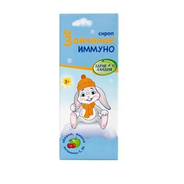 Сироп Зайчонок Иммуно. Оказывает выраженное иммуномодулирующее и общеукрепляющее действие. Рекомендуется для частоболеющих детей, для профилактики сезонных простуд. Экстракт Гибискуса снимает воспалительные симптомы дыхательных путей: боль в горле, кашель. Способствует разжижению, а затем отхождению мокроты. Экстракт Плодов Шиповника стимулирует сопротивляемость организма к, инфекциям и другим неблагоприятным факторам внешней среды, усиливают регенерацию тканей. Экстракт листьев Малины — это отличное жаропонижающее, потогонное и противовоспалительное средство. Экстракт Цветов липы обладает потогонным, желчегонным, противовоспалительным и жаропонижающим действием. Экстракт Чабреца оказывает отхаркивающее, противомикробное действие.