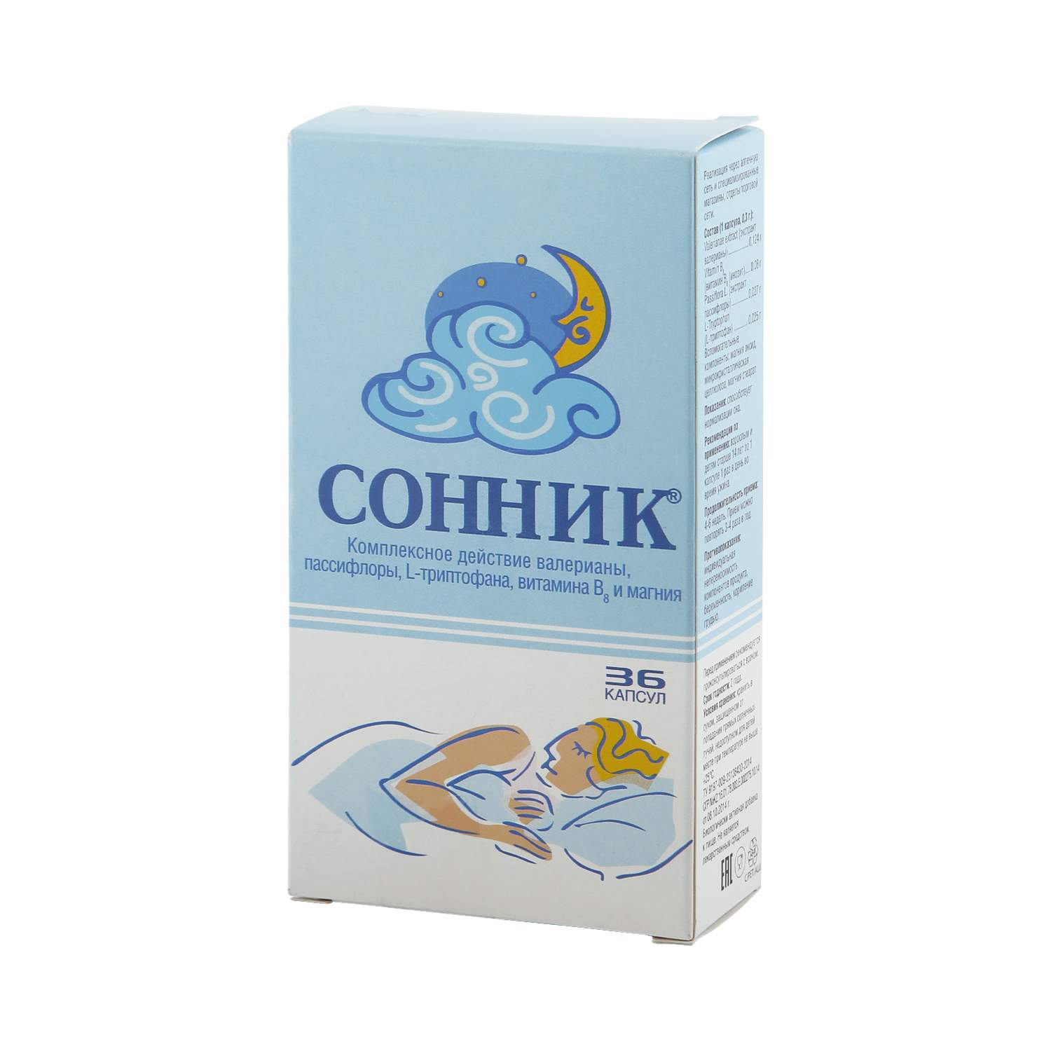 «Сонник» – надежный сон и никакого привыкания! Валериана лекарственная – уменьшает возбудимость центральной нервной системы, улучшает коронарное кровообращение, оказывает спазмолитическое, гипотензивное воздействие. Эффективно используется при неврозах, бессоннице, неврастении, истерии, начальной стадии гипертонии. Пассифлора (экстракт цветков) — подавляет передачу нервных импульсов в спинном и головном мозге, повышает частоту дыхания, снижает возбудимость нервной системы. Применяется как успокаивающее средство при неврастении, бессоннице, вегетативных нарушениях в климактерическом периоде, при постконтузионной и постгриппозной астении. L-триптофан – оказывает антидепрессивное действие, способствует снятию тревожности, напряжения, навязчивых состояний, синдрома хронической усталости, способствует хорошему засыпанию и нормальному сну. Витамин В8 (инозит) – оказывает антидепрессантное и антипаническое влияние на человека, участвует в регуляции ритма сердца.