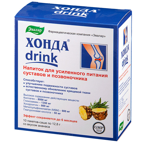 Коллагеновый напиток для усиленного питания суставов и позвоночника . «Хонда drink» – это вкусный напиток для усиленного питания суставов и позвоночника! С ним вы впервые получите целый комплекс компонентов, необходимых для здоровья суставов, в максимальной дозировке! Коллаген в «Хонда drink» представлен в особой форме — пептидного гидролизата. Он имеет уникальную структуру: мельчайшие частицы коллагена, получение которых стало возможным лишь благодаря высоким технологиям гидролиза, максимально усваиваются организмом и поступают в хрящевые ткани суставов.