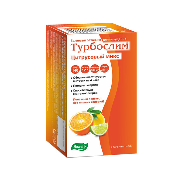 Питайтесь правильно везде, ведь так легко отказаться от калорийного десерта, если у вас под рукой есть батончики Турбослим! Их удобно носить с собой и без труда можно вписать в ваш рацион правильного питания в качестве перекуса или для замены одного из приемов пищи. Компания «Эвалар» - одна из крупнейших в России фармацевтических компаний. На основе природного сырья компания Эвалар разрабатывает лекарственные средства, биологически активные добавки к пище, косметические средства и специализированные продукты диетического и профилактического питания.