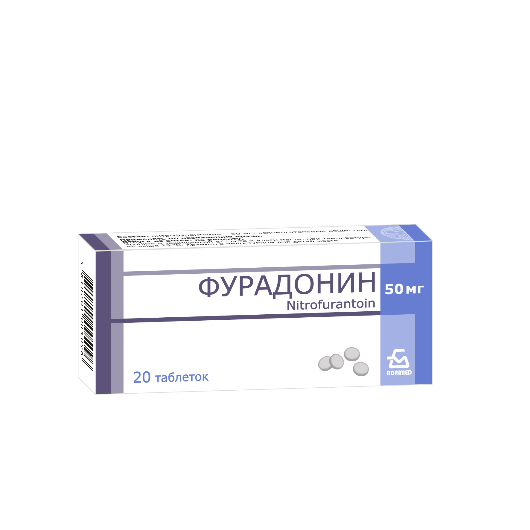 1 таблетка содержит: Действующее вещество: нитрофурантоин (фурадонин) 50 мг; Вспомогательные вещества: крахмал картофельный, кремния диоксид коллоидный, кальция стеарат 80.