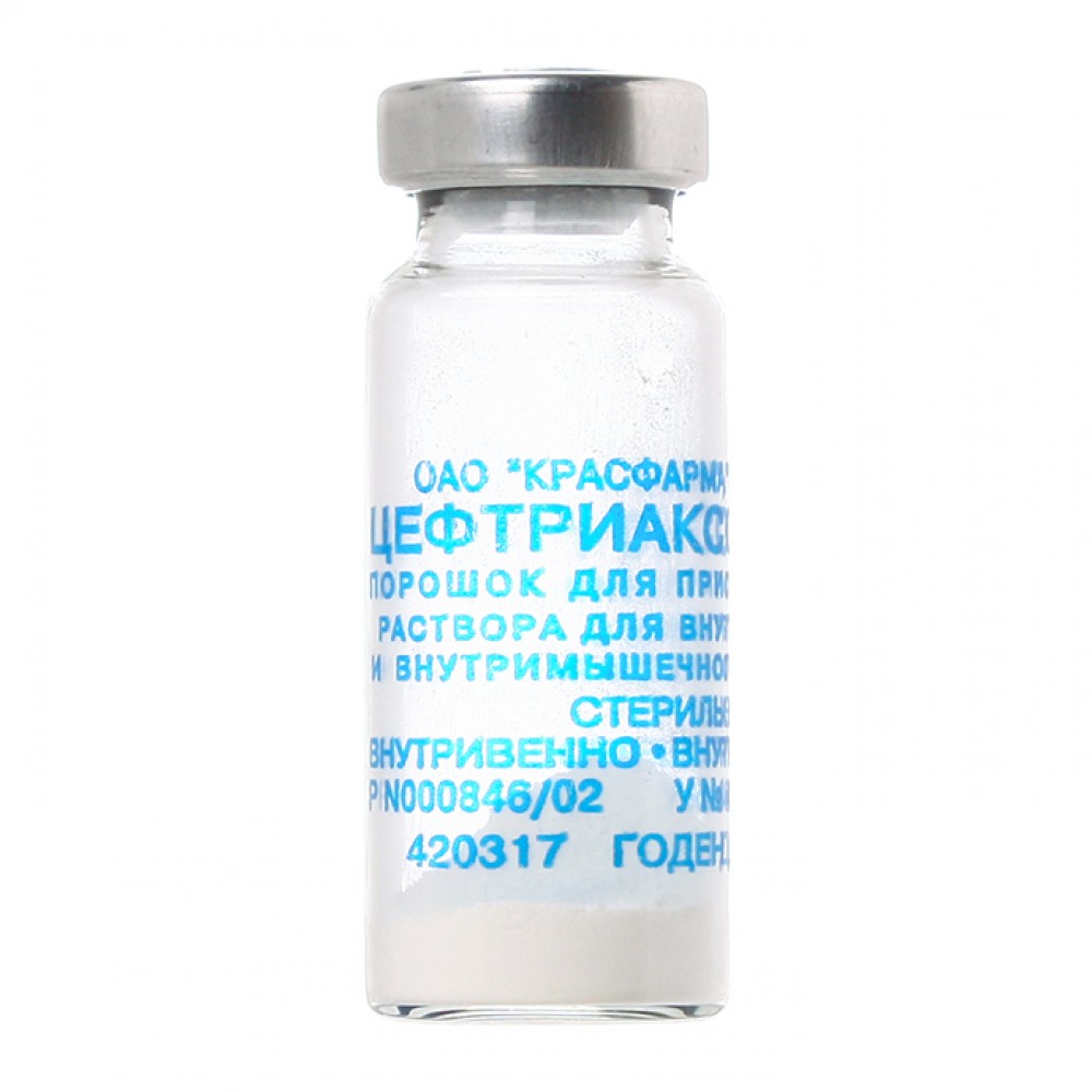 В 1 флаконе содержится цефтриаксон натрия (в пересчете на цефтриаксон) 1 г.
