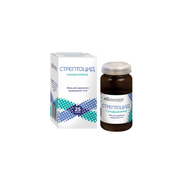 Действующее вещество: сульфаниламид (стрептоцид) - 10 г. Вспомогательное вещество: вазелин - 90 г.