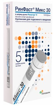 РинФаст Микс 30 сусп для п/к введ 100 ЕД/мл картридж со шприц-ручкой Ринастра II 3 мл №5