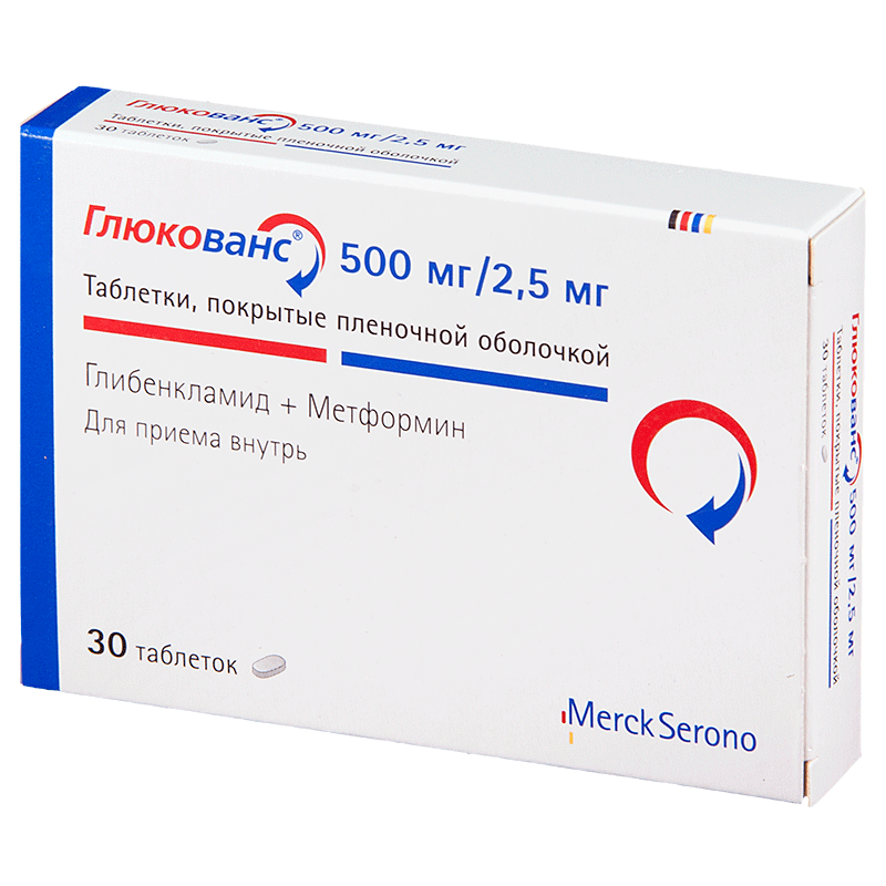 Глюкованс® представляет собой фиксированную комбинацию двух пероральных гипогликемических средств различных фармакологических групп: метформина и глибенкламида.