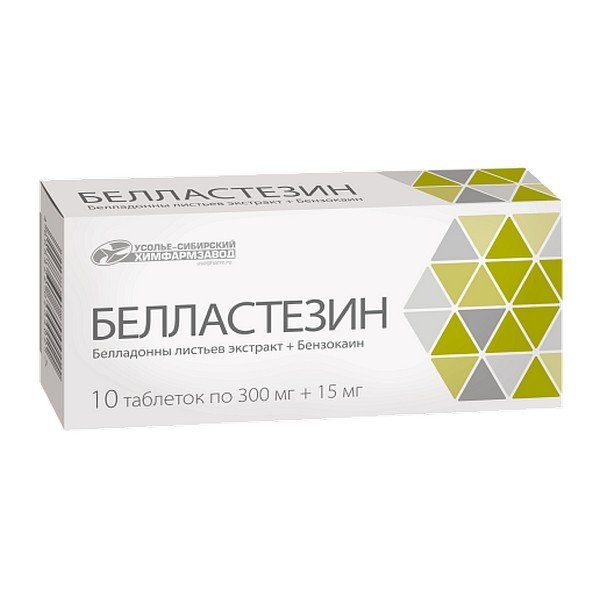 1 таблетка содержит: Активные компоненты: экстракт белладонны 15 мг, бензокаин 300 мг. Вспомогательные вещества: целлюлоза микрокристаллическая 0.035417 г, оксипропилцеллюлоза 0.00851, кроскармеллоза натрия 0.003691 г, тальк 0.003691 г, кальция стеарат 0.003691 г.