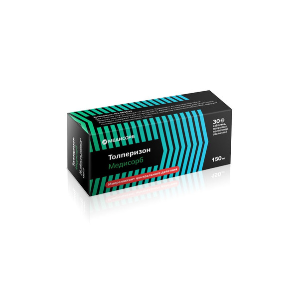 1 таблетка 150 мг содержит: Активное вещество: толперизона гидрохлорид - 150.00 мг; Вспомогательные вещества: целлюлоза микрокристаллическая - 70.00 мг; лактозы моногидрат (сахар молочный) - 43,50 мг; кроскармеллоза натрия - 12,00 мг: гипромеллоза - 3,00 мг; лимонной кислоты моногидрат - 4,50 мг; магния стеарат - 2,00 мг. Состав оболочки: гипромеллоза - 4.80 мг, макрогол - 4000 - 1.20 мг, титана диоксид -2.00 мг.