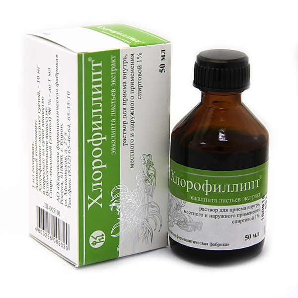 Хлорофиллипта экстракта густого(эвкалипта листьев экстракт) в концентрации 12,5 мкг в 1мл среды – 10г; Вспомогательного вещества: спирта этилового 95% (этанол) – до 1000мл