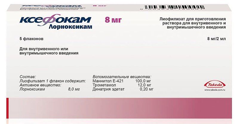 1 флакон содержит: Активное вещество: лорноксикам 8.0 мг. Вспомогательные вещества: маннитол Е-421 100,0 мг,трометамол 12,0 мг,динатрия эдетат 0.20 мг.