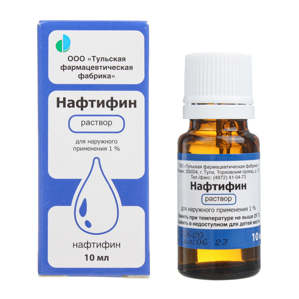 1 мл раствора содержит действующее вещество: нафтифина гидрохлорид - 10 мг. Вспомогательные вещества: пропиленгликоль - 50 мг, этанол (этиловый спирт 95 %) - 400 мг, вода очищенная - до 1 мл.