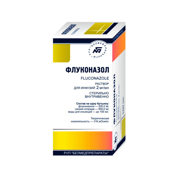 Действующее вещество: Флуконазол 2,0 г Вспомогательные вещества: Натрия хлорид 9,0 г Вода для инъекций до 1 л