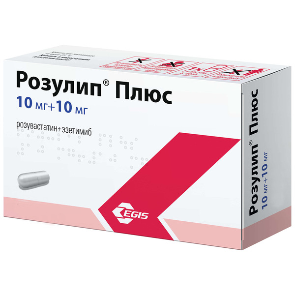 Первичная гиперхолестеринемия. Препарат Розулип Плюс показан в дополнение к диете пациентам с первичной гиперхолестеринемией (за исключением гетерозиготной семейной гиперхолестеринемии). Розулип Плюс назначается в качестве заместительной терапии пациентам, липидный профиль которых адекватно контролировался одновременным применением отдельных препаратов розувастатина и эзетимиба в дозах, эквивалентных соответствующим дозам в фиксированной комбинации.