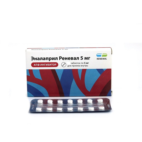 Действующее вещество: эналаприл - 5 мг. Вспомогательные вещества.