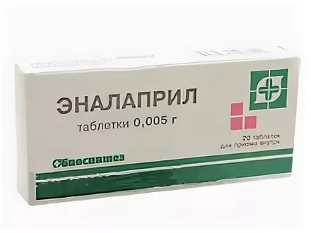 Действующее вещество: эналаприл - 5 мг. Вспомогательные вещества