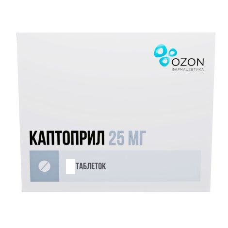 Активное вещество: каптоприл 25мг Вспомогательные вещества: целлюлоза микрокристаллическая, лактоза, кремния диоксид коллоидный, повидон, изопропиловый спирт, магния стеарат, тальк.