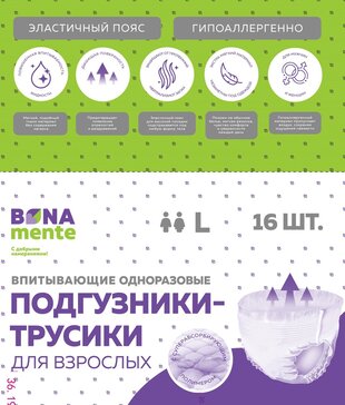 Подгузники-трусы – оптимальное решение для тех, кто ведет активные образ жизни, а также для людей с ограниченной подвижностью. Трусы удобны в применении, их можно надевать и снимать, как обычное белье. Подгузники-трусы плотно прилегают к телу с учетом анатомических особенностей, гарантируя защиту и комфорт днем и ночью. Анатомическая форма, эластичный пояс и мягкая манжета вокруг бедер обеспечивает отличное прилегание, не ограничивая движений. При необходимости боковые швы трусиков разрываются, позволяя легко и быстро поменять трусики. Воздухопроницаемые материалы обеспечивают циркуляцию воздуха в наиболее уязвимых частях тела в области бедер, тазовых костей и крестца. Длинный впитывающий внутренний слой обеспечивает защиту от протеканий по бокам и сзади, нейтрализует запах, быстро поглощает влагу и надежно удерживает ее внутри, сохраняя сухость и комфорт. Подходят как для женщин, так и для мужчин. С суперабсорбирующим полимером.