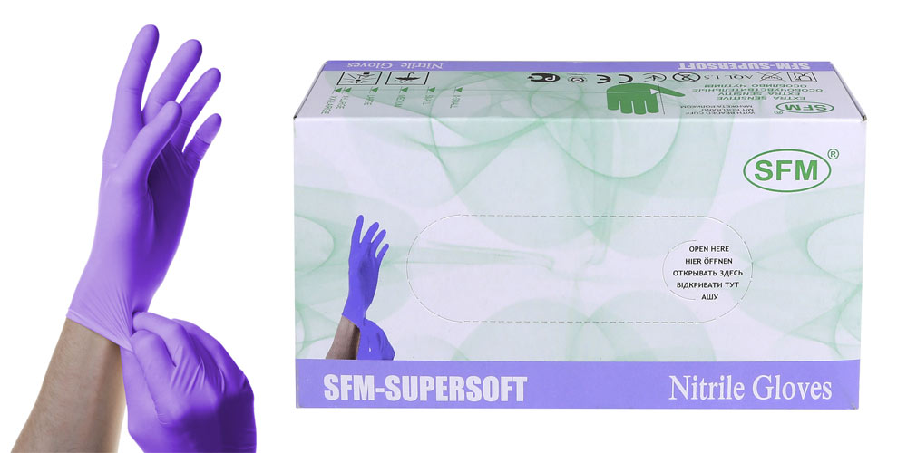 Перчатки нестерильные СФМ (SFM) смотровые нитриловые. Нитрильный латекс обладает высоким уровнем прочности, в том числе на прокол, в отличие от других материалов, устойчив к химическим средам. Перчатки из нитрила могут быть отличной альтернативой для людей, имеющих аллергию на натуральный латекс.