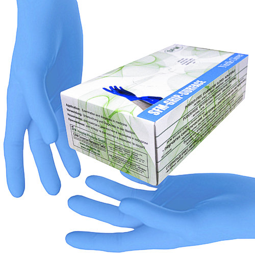 Перчатки нестерильные СФМ (SFM) смотровые нитриловые. Нитрильный латекс обладает высоким уровнем прочности, в том числе на прокол, в отличие от других материалов, устойчив к химическим средам. Перчатки из нитрила могут быть отличной альтернативой для людей, имеющих аллергию на натуральный латекс.