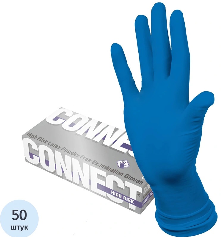 Перчатки смотровые латексные Коннект (Connect) HIGH нестерильные неопудренные р S №50 (25 пар) синий