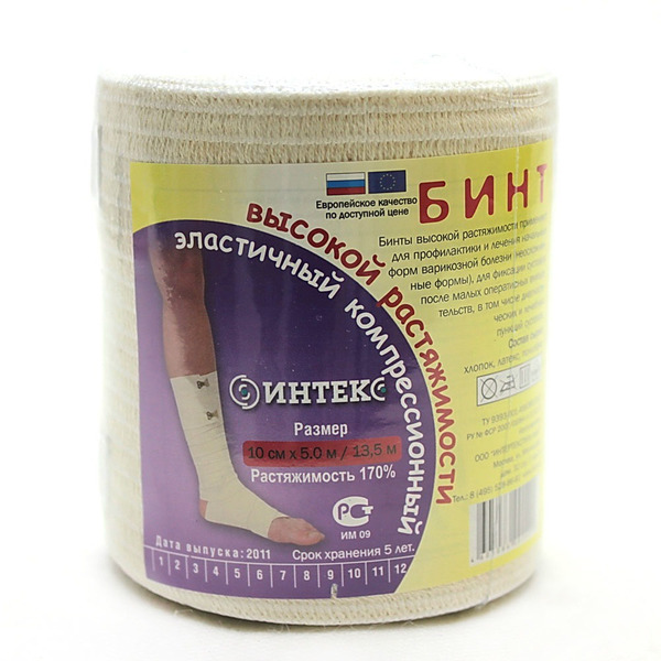 Эластичные компрессионные бинты «ИНТЕКС» высокой растяжимости (растяжимость бинта не менее 100%) используют во время лечения острых и хронических заболеваний вен, варикозного расширения вен, травматических осложнений (вывихи, отёки, растяжения), лимфостаза различного генезиса и травм опорно-двигательного аппарата. Часто бинты со средней растяжимостью применяют после удаления вен и подобных оперативных вмешательствах, а так же, склеротерапии, в том числе катетерной.