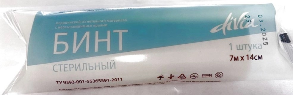 Бинт Дивиа (Divia) из нетканого материала с неосыпающимися краями стерильный 7 мх14 см