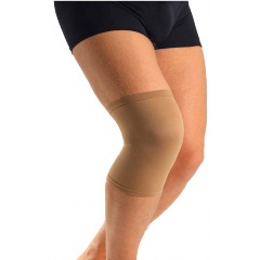 Бандаж на коленный сустав представляет собой ортопедическое изделие из трикотажа, плотно облегающее колено, тем самым, фиксирующее сустав, придающее ему стабильность и разгружающее его. Бандаж может быть мягким или усиленным. В первом случае сустав остаётся подвижным, во втором – ему придаётся иммобилизация. Воздействие: Предназначен для умеренной фиксации и стабилизации коленного сустава ног. Оказывает тепловое и микромассажное воздействие.