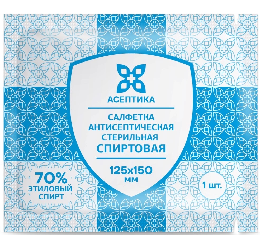 Салфетка спиртовая Асептика антисептическая для инъекций 125х150 мм №150