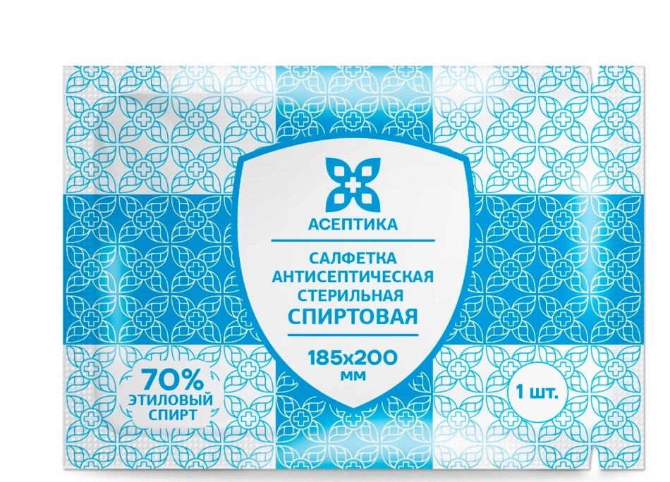 Салфетка спиртовая Асептика антисептическая для инъекций 185х200 мм №60