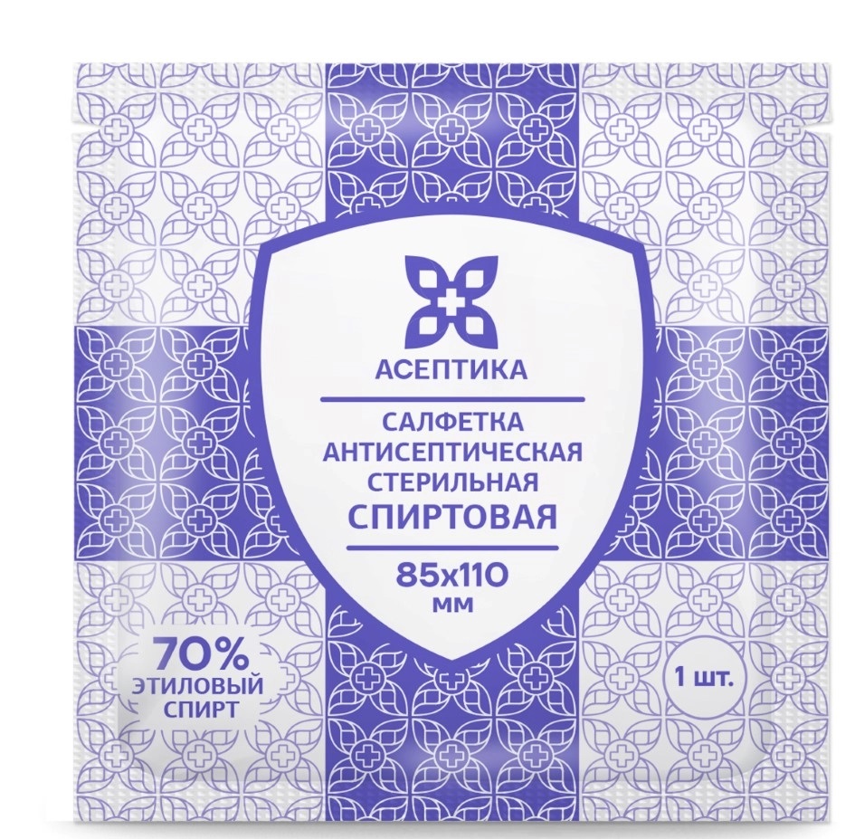 Салфетка спиртовая Асептика антисептическая для инъекций 85х110 мм №200