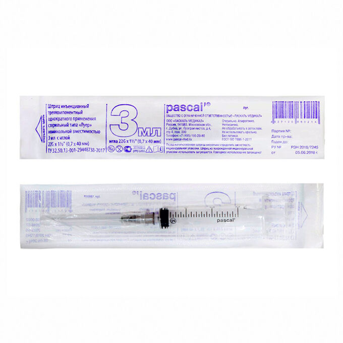 Шприц Паскаль 3-х компонентный (трехкомпонентный)