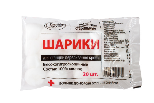 Ватные шарики Емельян Савостин стерильные д/станции перелив крови №20
