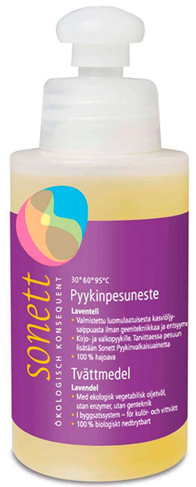 Средство жидкое для стирки Сонетт (Sonett) Лаванда. Для белых, окрашенных и тёмных изделий из хлопка, льна, синтетики. Преимущества Очень экономичны! Почти все средства - концентрированные. Высокая эффективность средств Sonett достигается путём добавления в стиральные порошки и чистящие средства Sonett натуральных гомеопатических компонентов, и активирования структуры воды. Средства Sonett не содержат: а-ПАВ, энзимов, продуктов переработки нефти, фосфатов, хлора, аммиака, синтетических отдушек, красителей, консервантов. Эти средства полностью разрушаются биологическим способом и не вызывают аллергических реакций.