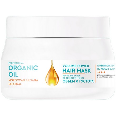 PROFESSIONAL ORGANIK OIL МАСКА Д/ВОЛОС НА АРГАНОВОМ МАСЛЕ ОБЪЕМ И ГУСТОТА - ощути всю роскошь драгоценного арганового масла в уходе для волос салонного уровня Professional Organic Oil! Маска Объем и густота на марокканском аргановом масле - профессиональное экспресс-средство для ухода за волосами, которые нуждаются в дополнительном объеме и укреплении.