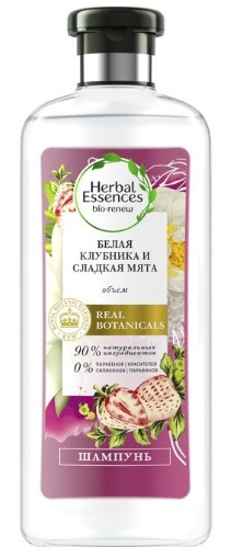 HERBAL ESSENCES ШАМПУНЬ БЕЛАЯ КЛУБНИКА И СЛАДКАЯ МЯТА - прозрачный густой гель с запахом клубники и мяты. Herbal Essences верит в красоту, вдохновленную самой природой. Теперь мы сотрудничаем с Королевским Ботаническим Садом Кью - всемирно признанным авторитетом в области ботаники, - что удостоверяет качество растительных ингредиентов в наших средствах. Шампунь Herbal Essences bio:renew Белая клубника и сладкая мята на 90 % состоит из натуральных ингредиентов* и включает в себя активный антиоксидант, который способствует бережному очищению и защите ваших волос. *очищенная вода и натуральные ингредиенты, прошедшие ограниченную обработку.