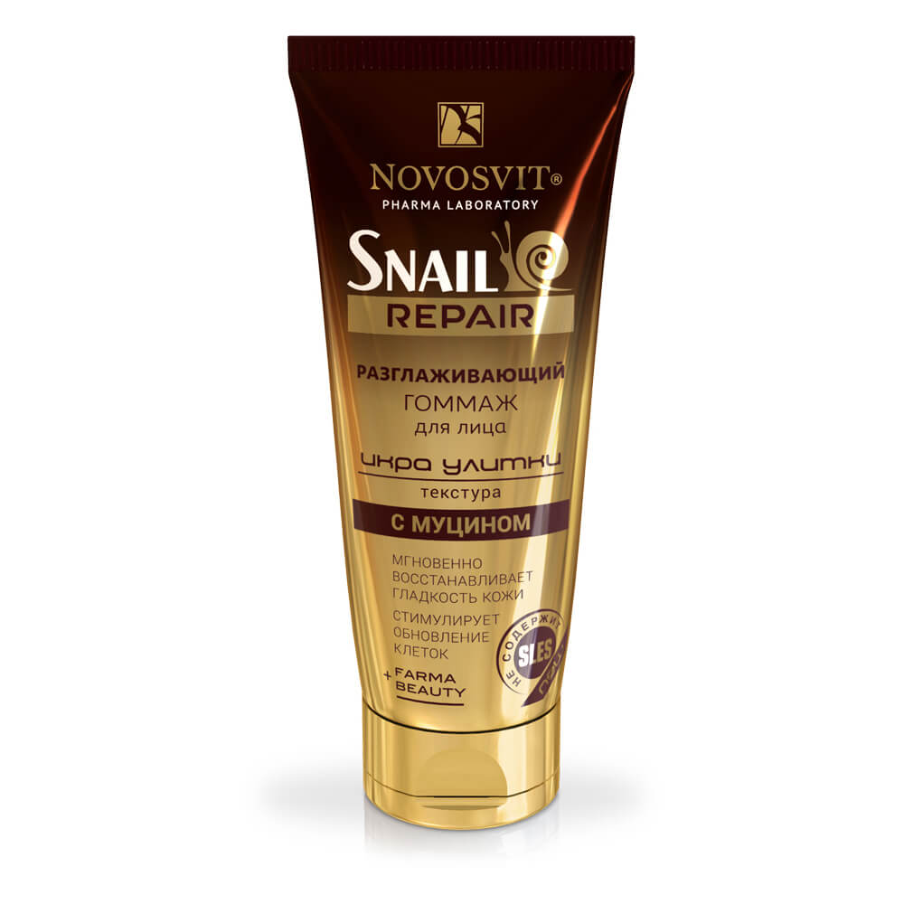 Гоммаж для лица Новосвит (Novosvit) Snail repair Икра улитки 70 мл. Разглаживающий гоммаж для лица «Икра улитки» с муцином – нежное средство для очищения и отшелушивания самой чувствительной кожи. Мгновенно восстанавливает гладкость, сохраняет баланс влаги и стимулирует обновление клеток. Сверхлегкая гелевая текстура «икринок» позволяет очищать кожу, не оказывая раздражающего и травмирующего действия. Не содержит SLES, зато имеет в составе увлажняющий комплекс на основе муцина улитки и экстракта винограда. Улитку Helix Aspersa специально выращивают в Перу на открытых и чистых эко-фермах. Питается улитка клубникой, свеклой листовой, розой, опунцией и овощами, поэтому получаемый муцин полностью натуральный, высочайшего качества, не содержит вредных примесей и антибиотиков. После получения муцина улиток возвращают на плантации.