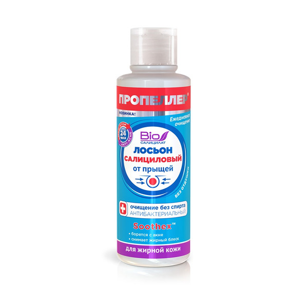 Салициловый лосьон для жирной кожи мягко очищает загрязнения и омертвевшие клетки. Благодаря растительным комплексам регулирует секрецию сальных желез, удаляет жирный блеск, сужает поры, снимает воспаления, устраняет угревую сыпь. BIO салицилат — природные салицилаты экстракта коры ивы, усиленные салициловой кислотой, подсушивают гнойнички. Soothex – растительный компонент, содержит очищенную смолу Олибанума, ускоряет процесс заживления, уменьшает покраснения, успокаивает кожу. Комплекс экстрактов: шалфей, можжевельник, календула эффективно сужают поры.