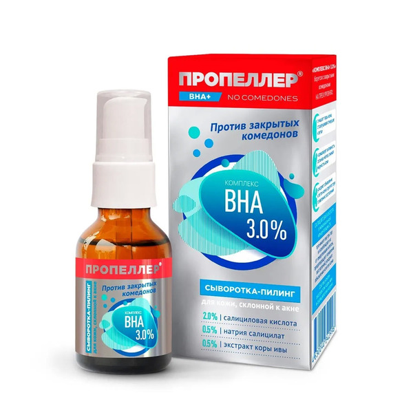 Сыворотка-пилинг КОМПЛЕКС ВНА 3% для кожи, склонной к акне. Сыворотка-пилинг эффективна для кожи с проблемами закрытых комедонов, «черных точек» и чрезмерной жирности. Комплекс ВНА 3% борется с закрытыми комедонами на трех уровнях: очищает поры кожи, отшелушивая отмершие клетки клетками; нормализует активность сальных желез, снижая жирность кожи; ускоряет обновление клеток кожи, препятствуя появлению воспалений. Салициловая кислота в максимальной концентрации 2% проникает внутрь пор и освобождает их от омертвевших клеток, предотвращает появление воспалений, ускоряет обновление клеток кожи.