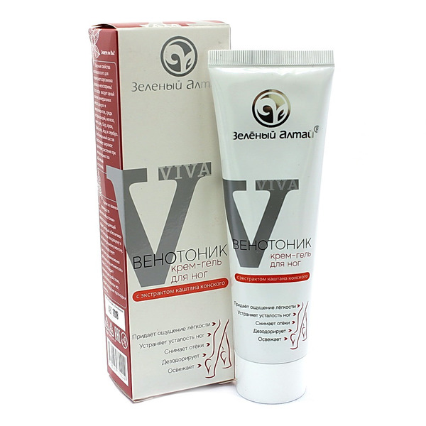 Крем-гель Венотоник для ног с экстрактом конского каштана. В состав конского каштана входит целый комплекс минеральных веществ, макро- и микроэлементов, среди которых кальций, железо, никель, цинк, бор, хром, барий, селен, йод и серебро. Такой уникальный состав обеспечивает широкое применение растения при лечении множества заболеваний и состояний. Одним из важных преимуществ крем-геля «Венотоник» является охлаждающий эффект, который обеспечивается благодаря входящему в состав натуральному ментолу. Ментол способствует быстрому проникновению действующих компонентов в ткани. Он обладает освежающим свойством, расслабляет мышцы ног, создает ощущение прохлады и легкости. Входящий в состав экстракт каштана знаменит своими венотонизирующими, антиоксидантными, противоотёчными и противовоспалительными свойствами, Крем станет незаменимым помощником дома и на отдыхе, после трудового дня или долгой прогулки.