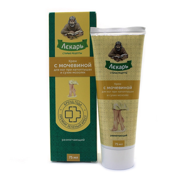 Крем Лекарь для ног при натоптышах и сухих мозолях размягчающий с мочевиной. Мочевина – натуральный увлажняющий компонент, прекрасный проводник биологически активных веществ. Если коже не хватает собственной мочевины, она становится сухой, особенно в области ступней: кожа трескается, шелушится, появляются натоптыши и мозоли. Насыщенная формула крема с мочевиной мгновенно восполняет недостаток влаги, масло чайного дерева смягчает огрубевшую кожу ног, экстракты чистотела и коры дуба заживляют ранки, снимают усталость и боль. Кремы «Лекарь» – это линия уникальных продуктов, предназначенных для ухода за кожей. В состав косметических средств входят эффективные натуральные компоненты, столетиями применявшиеся знахарями и травниками. В частности, используются арника, бадяга, горчица, красное пальмовое масло, гинкго билоба, гриб чага, сабельник, красный перец, экстракт алоэ. Также в рамках серии «Лекарь» были разработаны уникальные продукты на основе шунгита и мочевины.