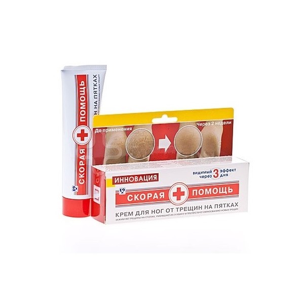 Обладает выраженным противогрибковым, противовоспалительным, заживляющим, обезболивающим действием. Витамины и масла лекарственных растений питают кожу стопы огромным количеством ценных веществ, ускоряя заживление трещин и предотвращая их повторное появление. Увлажняют и смягчают кожу, повышают ее эластичность. Преимущества крема для пяток “Скорая помощь”. Компоненты природного происхождения оказывают комплексное воздействие на кожу стоп - заживляющее, смягчающее, увлажняющее, отшелушивающее.