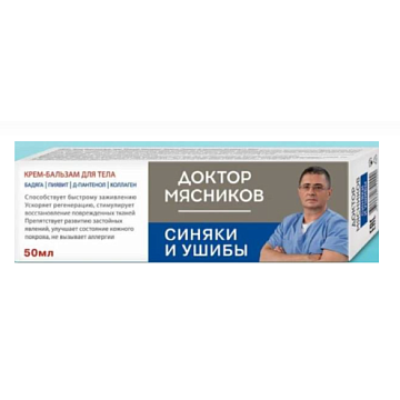 Крем-бальзам Доктор Мясников Бадяга, Пиявит, Д-пантенол, Коллаген