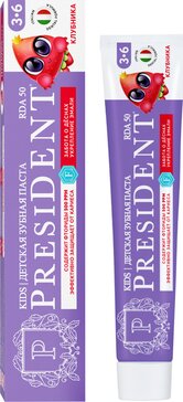 Зубная паста Президент (PresiDENT) клубника с фтором детская с 3 до 6 лет 70 мл