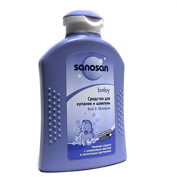 Средство для купания и шампунь Sanosan. С помощью мягких моющих компонентов очищает кожу и тонкие волосы младенца особенно нежно и бережно, не высушивая их. Не нарушает естественной защитной функции глаз благодаря отсутствию тензидов, лишающих глаз чувствительности. Состав: вода, сорбитол, кокамидопропил бетаин, лаурил глюкозид, натрия лауроилглутамат, коко-глюкозид, отдушка, пантенол, гидроксипропил-гуар-гидроксипропил-тримониум хлорид, масло авокадо, кератиновые аминокислоты, натрия хлорид, бензилалкоголь, пропиленгликоль. Средство для купания и одновременно мягкий шампунь для чувствительной кожи. Подходит для ежедневного применения.