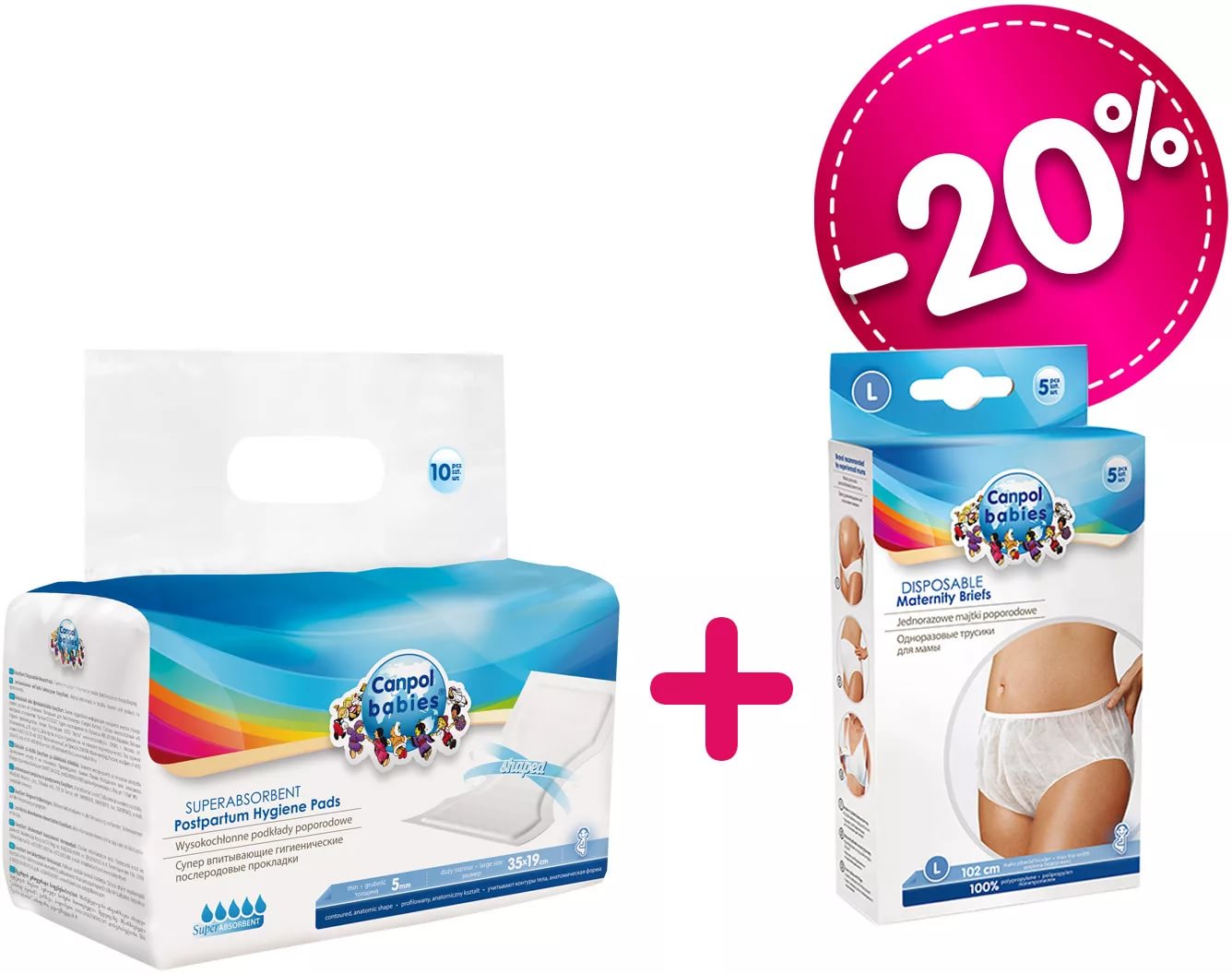 Гигиенические прокладки "Cаnpol Babies" подходят для использования в послеродовой период. Удобная анатомическая форма и тонкая структура обеспечивают постоянную и эффективную защиту даже при использовании в лежачем положении. Супервпитывающий слой надежно нейтрализует запахи. Мягкий внешний слой предотвращает раздражение кожи.Эластичные трусы для мам "Canpol Babies" очень практичны для использования во время беременности и в роддоме. Трусики изготовлены из мягкого, эластичного материала, который не раздражает нежную кожу. Благодаря удобному дизайну, трусики комфортно носить, они не оставляют следов на коже, помогают справиться с дискомфортом во время беременности. Трусики обеспечивают безупречную фиксацию прокладок и предназначены для многократного использования.